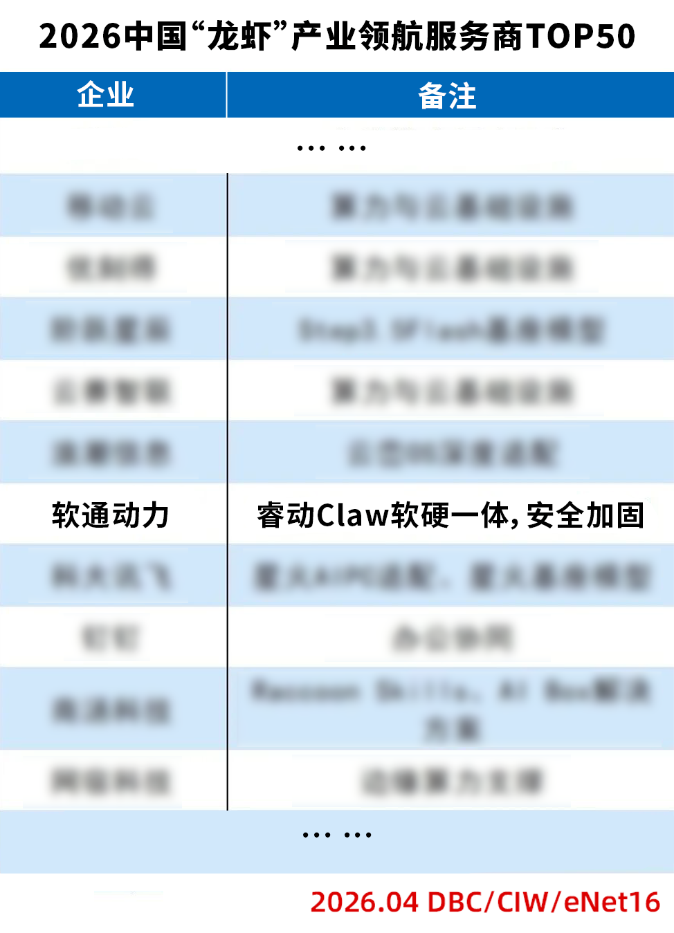 近日,DBC德本咨询发布"2026中国'龙虾'产业领航服务商TOP50"榜单,软通动力睿动Claw以"...