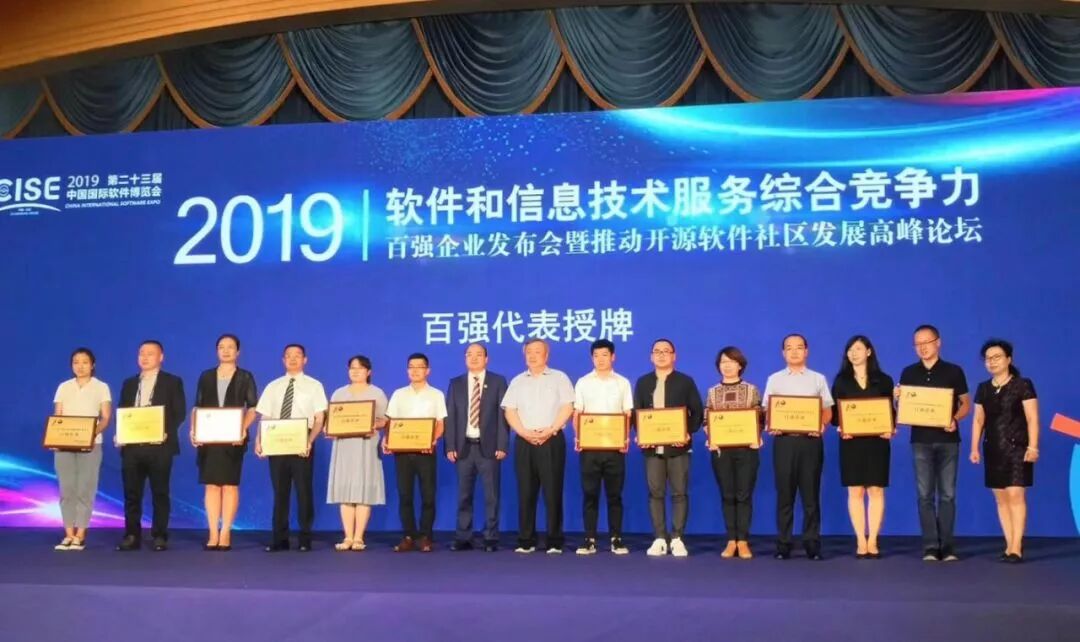 ▲ “2019软件与信息技术服务综合竞争力百强企业”授牌