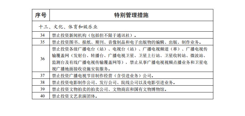 交通运输领域,取消国内船舶代理须由中方控股的限制。基础设施领域,取消50万人口以上城市燃气、热力管网须由中方控股的限制。文化领域,取消电影院、演出经纪机构须由中方控股的限制。增值电信领域,取消国内多方通信、存储转发、呼叫中心3项业务对外资的限制。