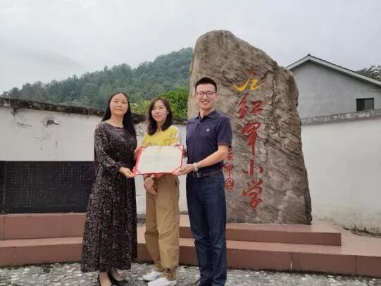 三新文化郭总和成蹊基金会翁理事深深感受到教师的责任和坚强,他们表示三新文化和成蹊慈善公益基金会的初心就是传播文化,荡涤心灵,希望捐赠的书籍能助孩子们插上理想的翅膀飞出大山,回报祖国和社会并将红军精神传播天下。