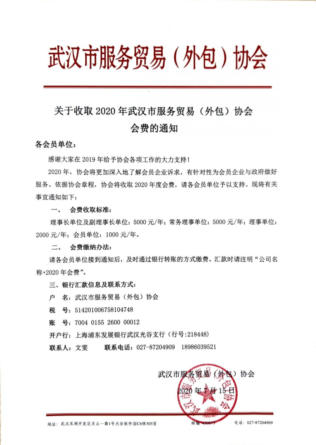 请各会员单位接到通知后,及时通过银行转账的方式缴费,汇款时请注明“公司名称+2020年会费”