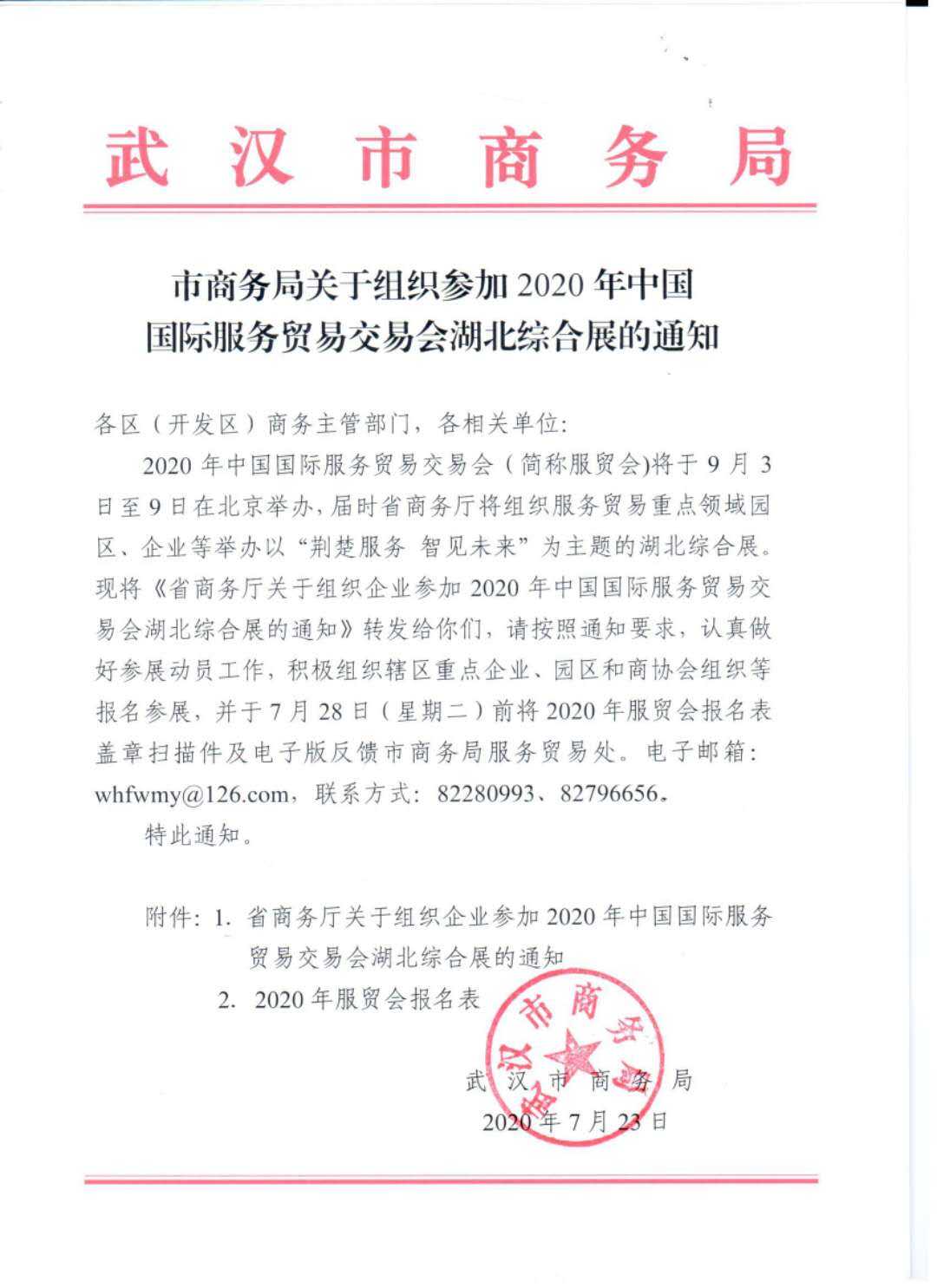 附件:1.省商务厅关于组织企业参加2020年中国国际服务贸易交易会湖北综合展的通知