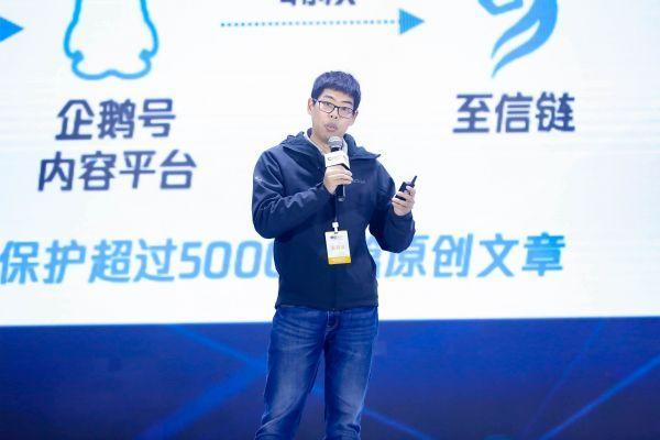 腾讯云区块链总经理李力在开幕式上演讲。图片来源于大会主办方