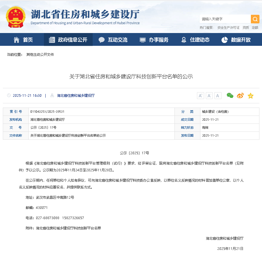 校企联合 再结硕果——公司获批“湖北省住房和城乡建设厅数字设计工程技术创新中心”