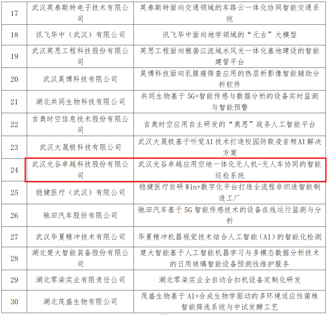 近日,湖北省经济和信息化厅正式公布了“2025年湖北省中小企业人工智能典型应用场景”遴选结果。武汉光谷卓越科技股份有限公司凭借其“空地一体化无人机-无人车协同的智能巡检系统”,在众多申报项目中脱颖而出,成功入选湖北省人工智能典型应用场景。此次省级荣誉是继“基于AI的交通基础设施空天地一体化智能巡检系统”获评2025年武汉市人工智能优秀应用场景后,在短时间内赢得的又一重要认可。此次遴选由湖北省经信厅组织,旨在深入开展中小企业数字化赋能专项行动,加速人工智能技术赋能中小企业创新发展,最终在全省范围内认定30个具有示范意义的企业场景。