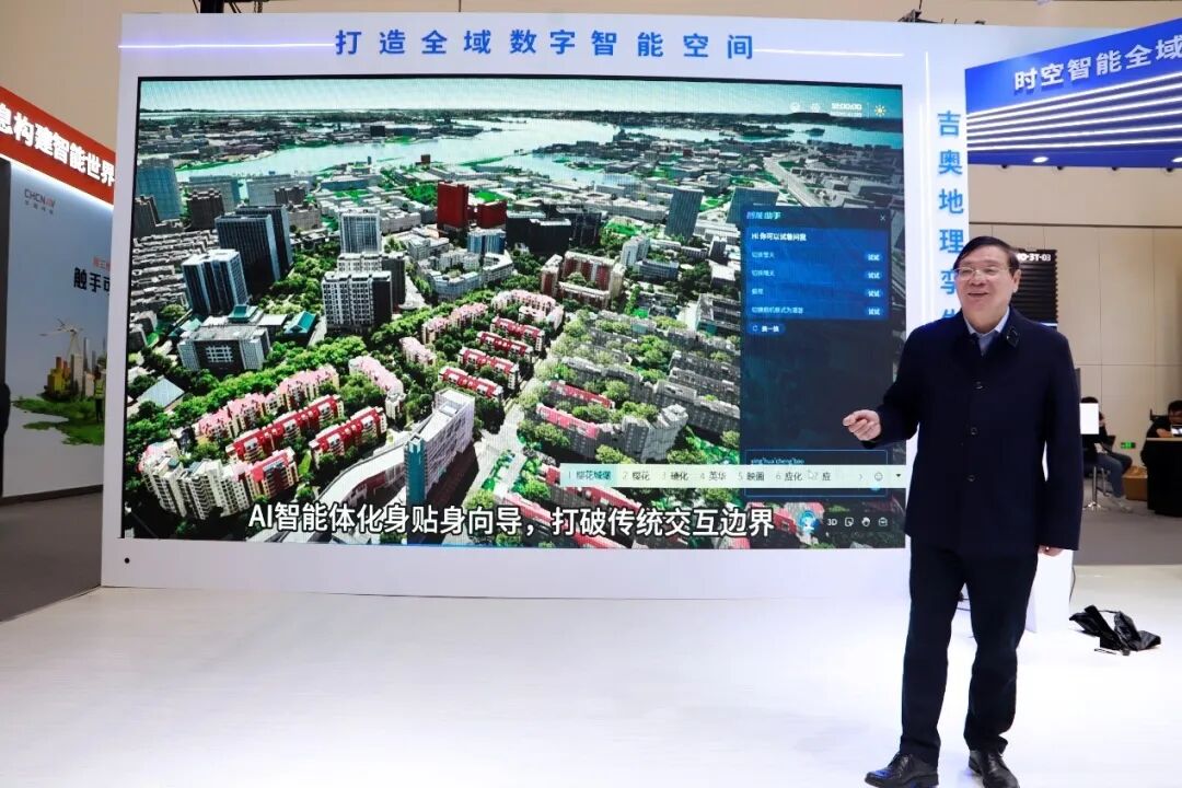 在2025年第二届中国测绘地理信息大会上吉奥地理孪生平台GeoGTP V2.0正式首展,龚健雅院士莅临吉奥展台指导