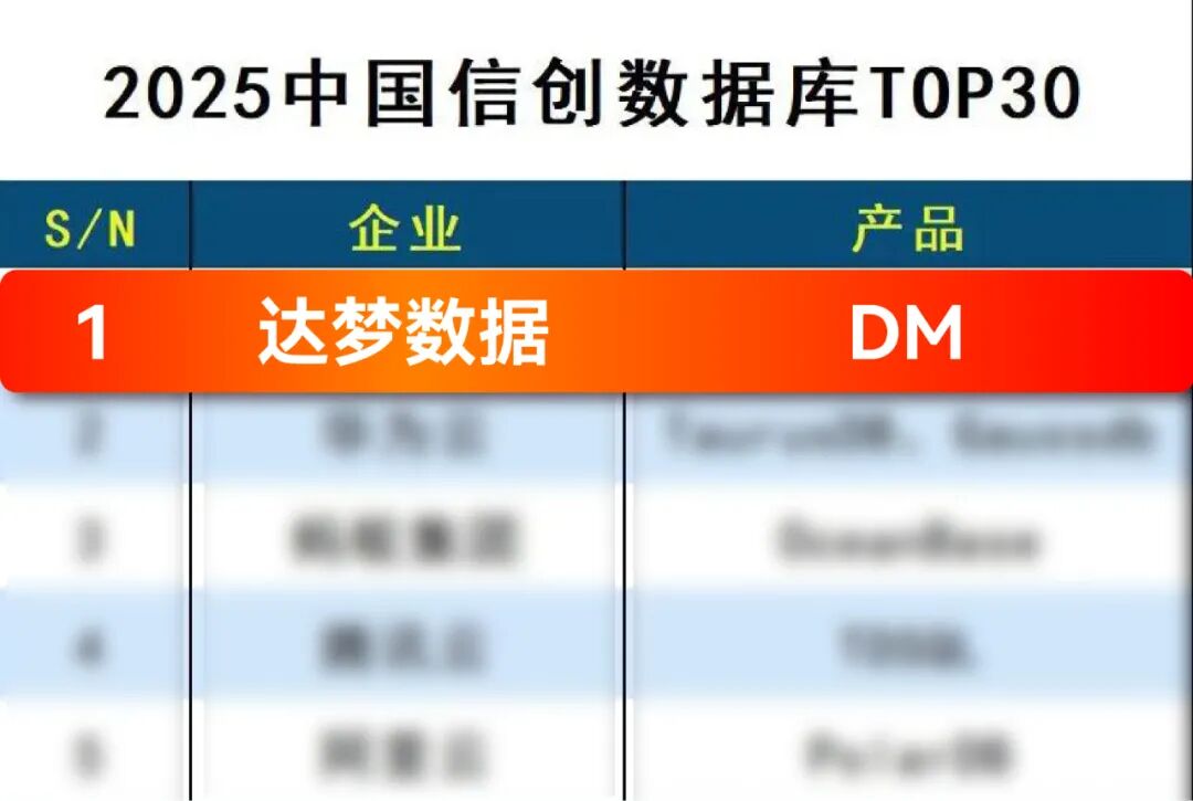 新年伊始,捷报频传。近日,ICT研究机构DBC德本咨询相继发布了“2025年度信创领军企业排行”与“2025中国信创数据库TOP30”,达梦数据凭借在数据库领域卓越的自主研发能力、市场表现以及生态建设能力,同时荣登两大榜单,入选“2025年度信创领军企业”,上榜“2025中国信创数据库TOP30”前列。