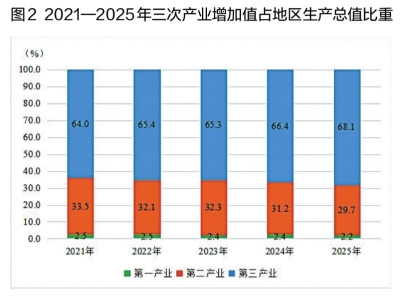 初步核算,2025年,全市实现地区生产总值(GDP)22147.35亿元,按不变价格计算,比上年增长5.6%。分产业看,第一产业增加值481.21亿元,增长3.8%;第二产业增加值6589.72亿元,增长5.0%;第三产业增加值15076.42亿元,增长5.9%。三次产业结构为2.2∶29.7∶68.1。