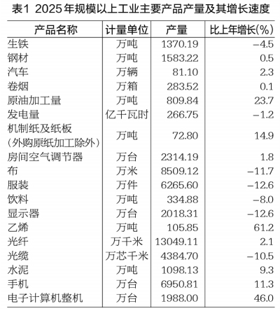 全年规模以上工业增加值比上年增长6.2%。其中,计算机、通信和其他电子设备制造业增加值增长18.9%,黑色金属冶炼和压延加工业增长12.1%,汽车制造业增长11.7%,电气机械和器材制造业增长11.5%,化学原料和化学制品制造业增长10.1%。