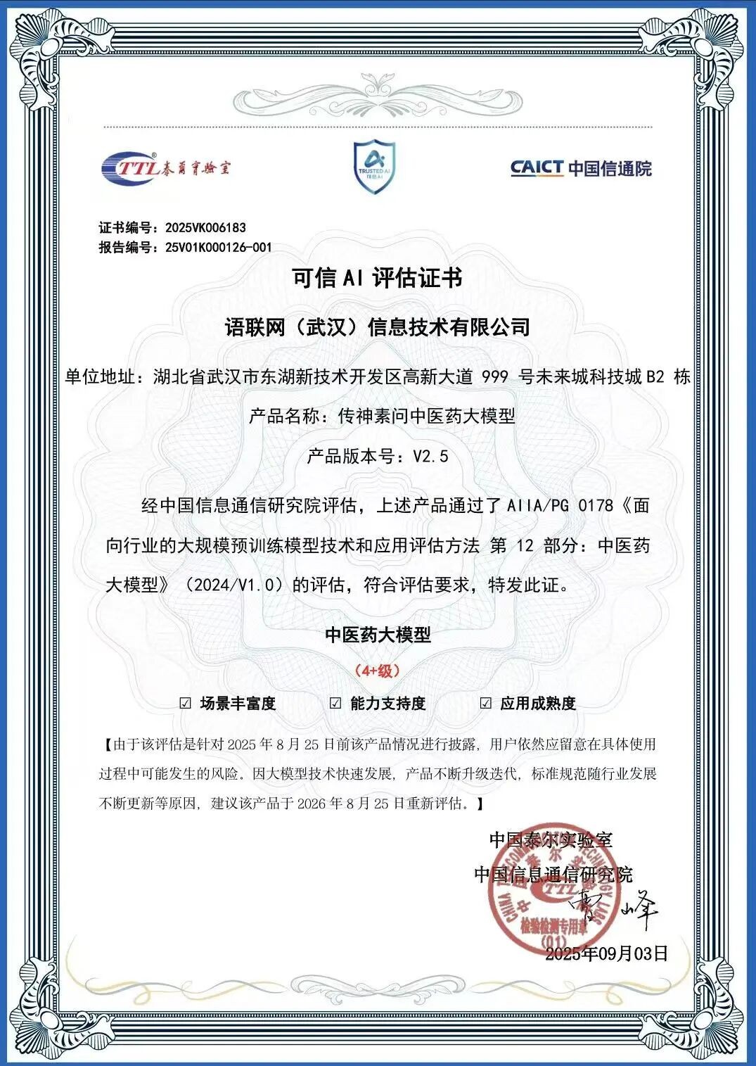 近日,传神素问中医大模型以卓越的表现,通过中国信通院可信AI中医药大模型评估,获得4+级高评级。值得骄傲的是,目前国内数十个中医大模型中,只有三个(含传神...