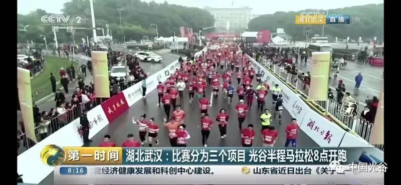 上午8:15,中央电视台财经频道《第一时间》节目现场连线,直播报道了2018奔跑吧光谷半马活动。