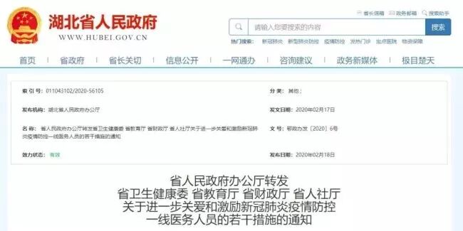 湖北官方发布《关于进一步关爱和激励新冠肺炎疫情防控一线医务人员的若干措施》,若干措施提出,加强对一线医务人员的政策倾斜。