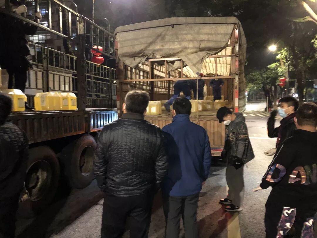 第一次运送物资的时候非常紧张,像黄冈、麻城、孝感这些地方,物资非常短缺,都需要卫健委这边统一调配。之前有一批消毒水有1400件,每个地方可能只能分配到两三百件。当时麻城开了一个超级大的货车过来,结果运走的几百件消毒水连货车的角落都没铺满,当时心里看着是非常难受的。