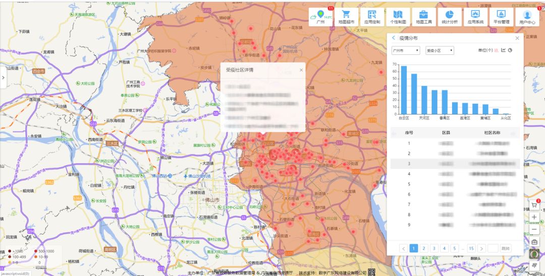 作为广东省“数字政府”的重要组成部分,“粤政图”经过近两年的信息化建设,已形成对全省地理信息的支撑能力和数据共享能力。在此基础上,为进一步满足委办厅的应急需求,项目组在“粤政图”核心模块上,快速搭建疫情防控专题工具,实现多类数据的智能监管、动态显示和图上统计。