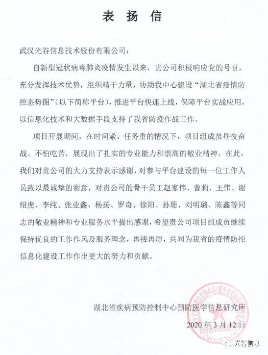 疫情发展形势严峻,疫情管控刻不容缓,光谷信息项目组在疫情攻坚战中充分发挥了集中力量办大事的能力,三天四夜“爆肝”完成湖北省疫情防控态势图的快速交付,协助湖北省疾控中心运用大数据技术打好疫情防控信息战。