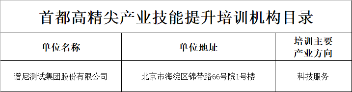为做好高精尖产业技能提升培训,落实培训信息公开化、培训项目目录化、培训评价即时化、培训资源集成化、资金使用有效化的要求,北京市科委5月6日公布了“高精尖产业技能提升培训项目和培训机构目录”,谱尼测试集团名列其中,经过专家评审,综合评定等程序,成功入选北京市科委首批高精尖产业技能提升培训项目和培训机构名单。