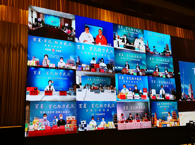 据了解,中商惠民、阿里巴巴、腾讯、京东、苏宁、拼多多、抖音、快手和斗鱼等直播平台联合发出倡议,大力推广和销售武汉产品,全面加大对武汉直播公益活动的支持力度,携手助力直播产业在武汉做强做优做大,共同将武汉打造成中国重要的直播产业基地。此外,本次活动还分别在北京、香港及武汉各区设立分会场。通过远程连线直播,邀请到了姜昆、成龙、曾志伟、吴亦凡、于文华、黄奕等一批公益明星前来助阵,为武汉经济复苏和武汉产品带货助力。
