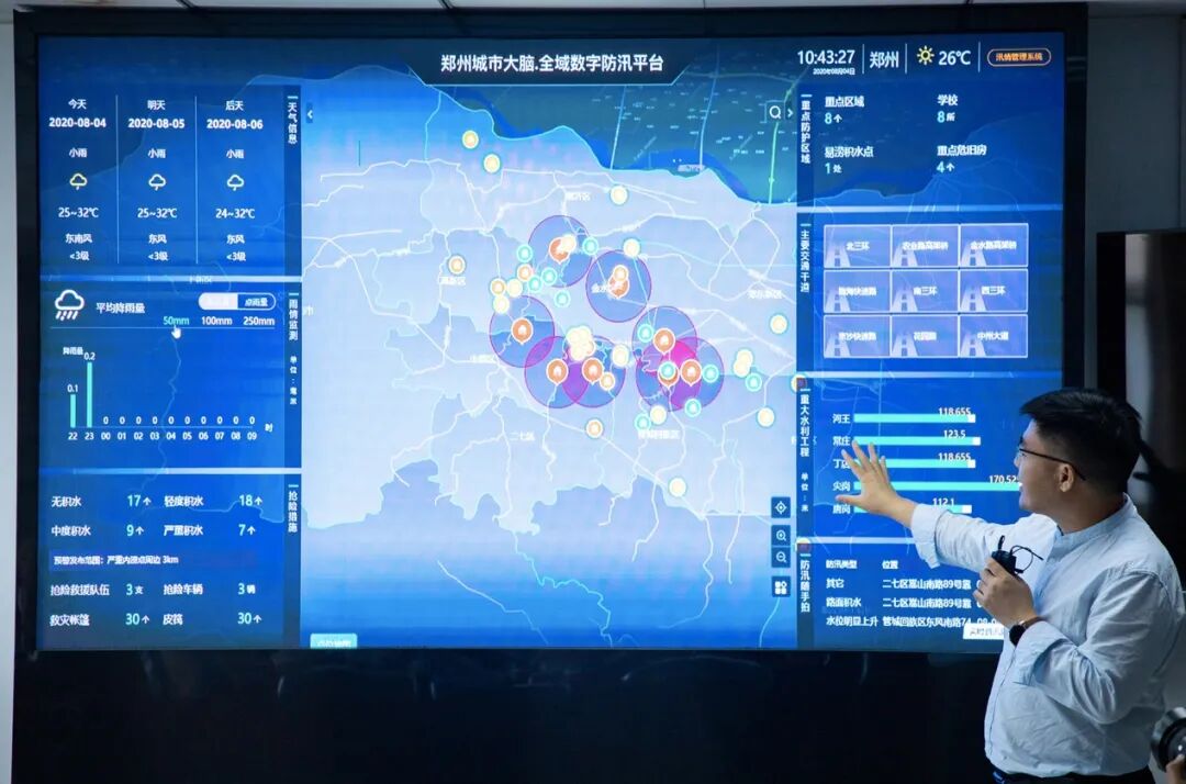 (图为“数字郑州”架构师演示“郑州数字防汛平台”功能)