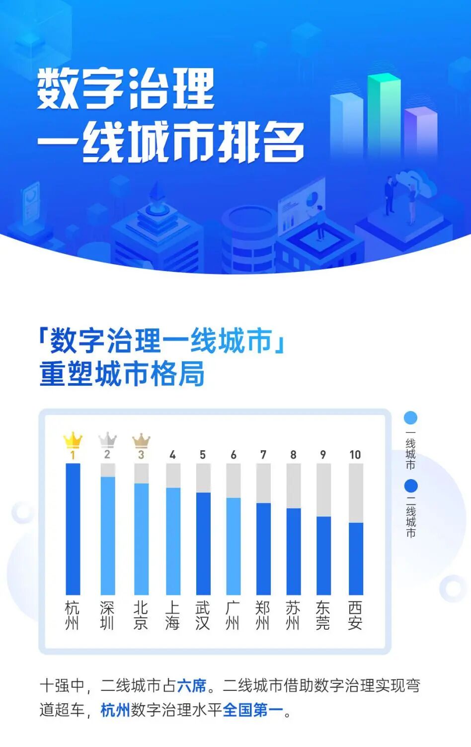 除了杭州、武汉这些新一线城市,广大二三四线城市也正在借助数字治理的东风,谋求跨越式发展。像是浙江湖州,GDP排名全国81位,但数字治理指数却居于22名,已然进入二线水平。
