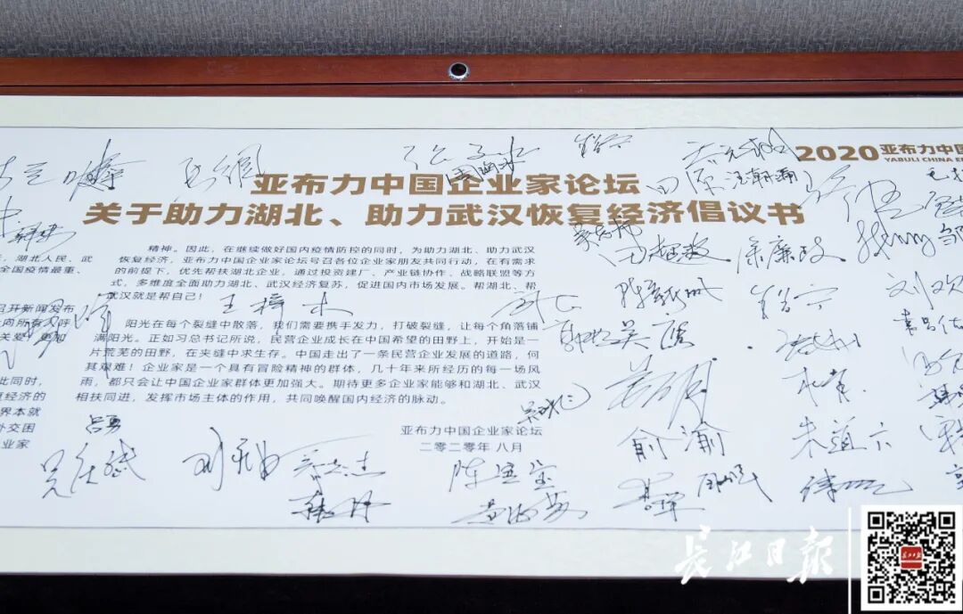百名知名企业家在亚布力中国企业家论坛关于助力湖北、助力武汉恢复经济倡议书上签名。任勇 摄