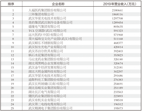该榜单由武汉市委统战部、市委宣传部、市经信局、市工商联共同组织,在企业自主申报的基础上,以2019年企业营业收入总额为依据,由市工商联完成统计和发布。