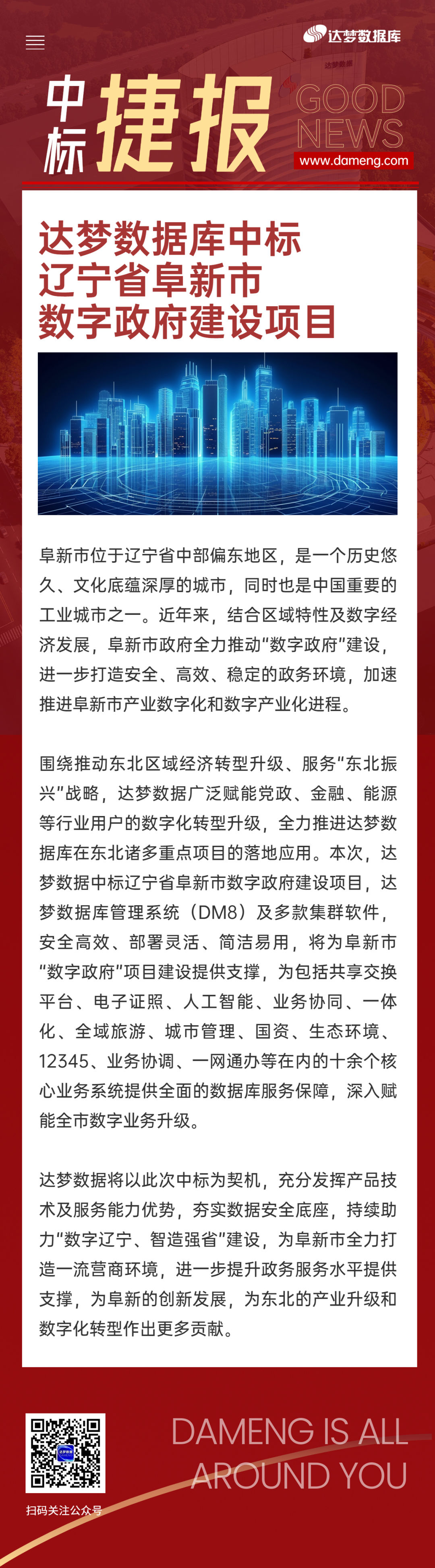 理事动态 | 达梦数据库中标辽宁省阜新市数字政府建设项目