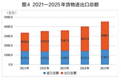 全年全市进出口总额达4548.5亿元,比上年增长12.7%。其中,出口2968.5亿元,增长13.2%;进口1580.0亿元,增长11.9%。“一带一路”国家进出口总额2121.9亿元,增长10.4%。对外承包工程完成营业额76.11亿美元,增长24.0%。