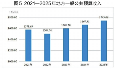 全年完成地方一般公共预算收入1743.06亿元,比上年增长4.5%。其中,税收收入1225.10亿元,增长0.1%。